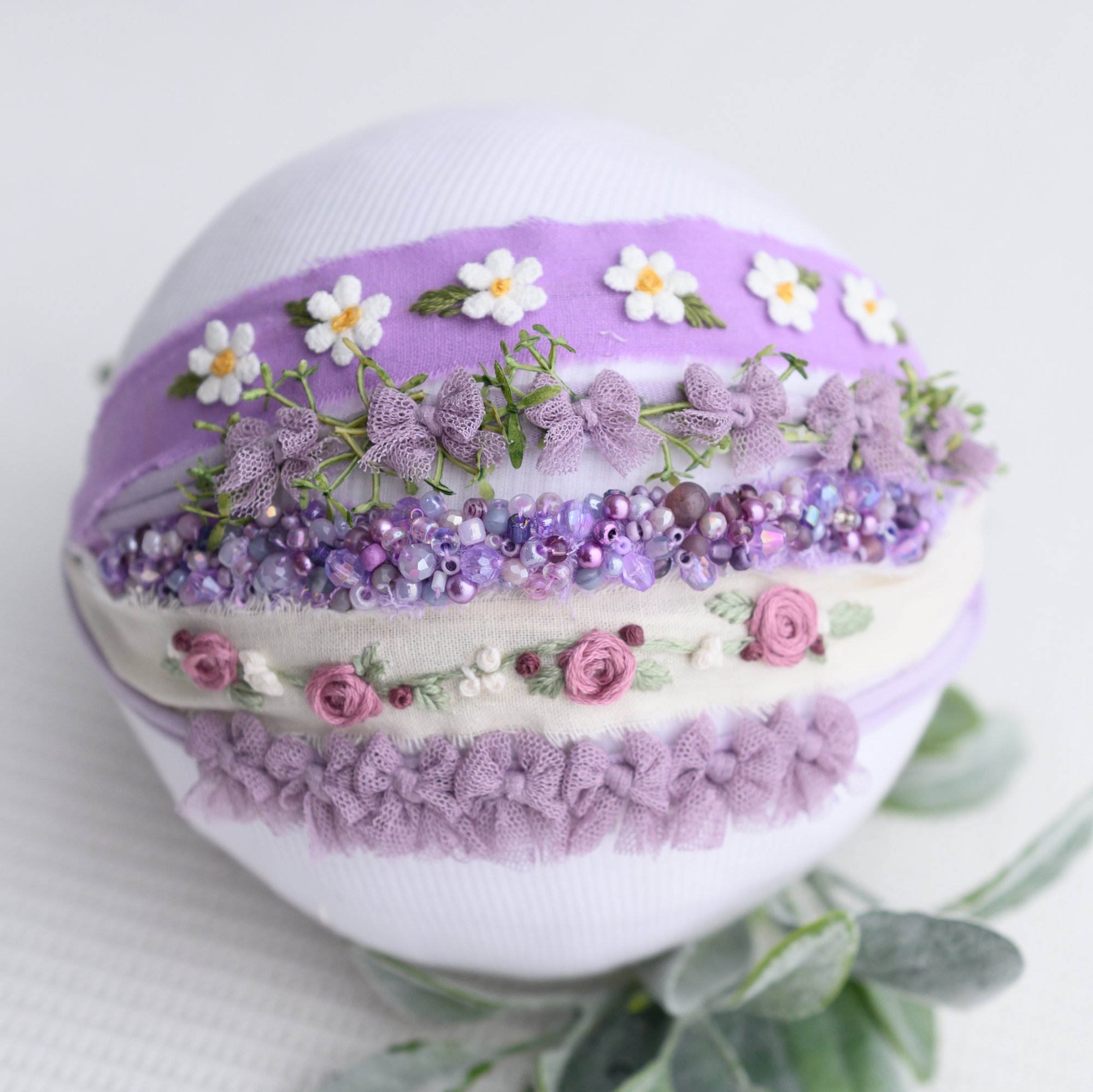 A dreamy mix of lavender tones, hand-embroidered florals, and delicate beading that feels like a stroll through a summer meadow in bloom.