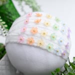 Step into a rainbow meadow where every bloom is kissed with pastel sunshine. 🌸✨ This headband features dainty flowers in a rainbow of soft hues, each stitched onto a wispy white base. A cheerful, light, and timeless piece—perfect for adding a playful touch to newborn sessions or springtime portraits.